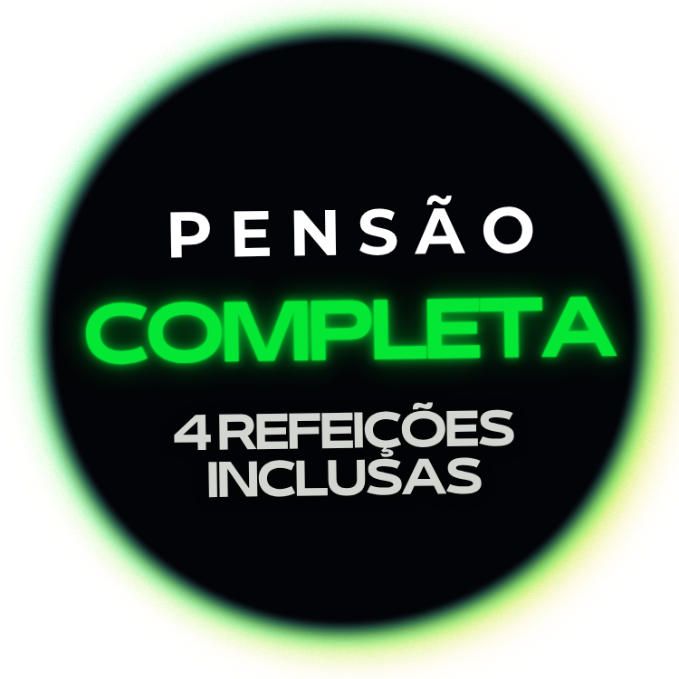 Pensão completa: 4 refeições inclusas na hospedagem, bebidas e extras cobrados à parte!